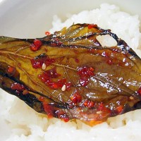 エゴマの葉、漬け原材料[醤油、ねぎ、とうがらし、水飴、にんじん、にんにく、ごま]、(原材料の一部に大豆、ごまを含む)