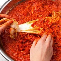 唐辛子(中国)、長葱、カナリエキス、イワシエキス、もち米粉、にんにく、りんご、生姜、アミの塩辛(ミキサー、砂糖、塩、調味料(アミノ酸等)