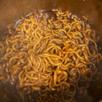 2.残ったお湯を捨てず、茹でた麺に粉末 スープと油性スープを入れて、よくかき混ぜてお召し上がりください。