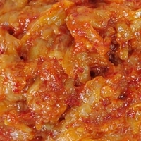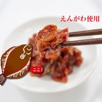 チャンジャの味を決める厳選したえんがわを使用しました。歯ごたえと旨みあるえんがわを使用。えんがわとは、魚のヒレを動かすための筋肉のことをいいます。コリコリとした舌触りが特徴です。他の材料も丁寧に処理したものだけを使っています。