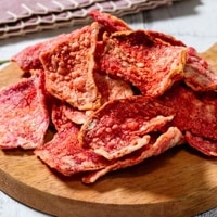 ビーツにもち米のでんぷんをコーティングして熟成させ、非遺伝子組換えコーン油で揚げたスナックです。