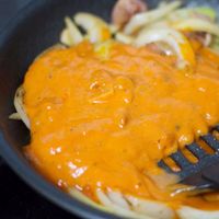 大きめのトマトにたっぷりの生クリームと玉ねぎ、香ばしいバジルとオレガノが1人前パックなので手軽にロゼパスタが作れます!