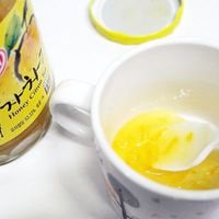 ティースプーン3〜4(20g)程度のゆず茶を湯呑みに入れ、お湯を約80ml入れよく混ぜてからお飲みください。